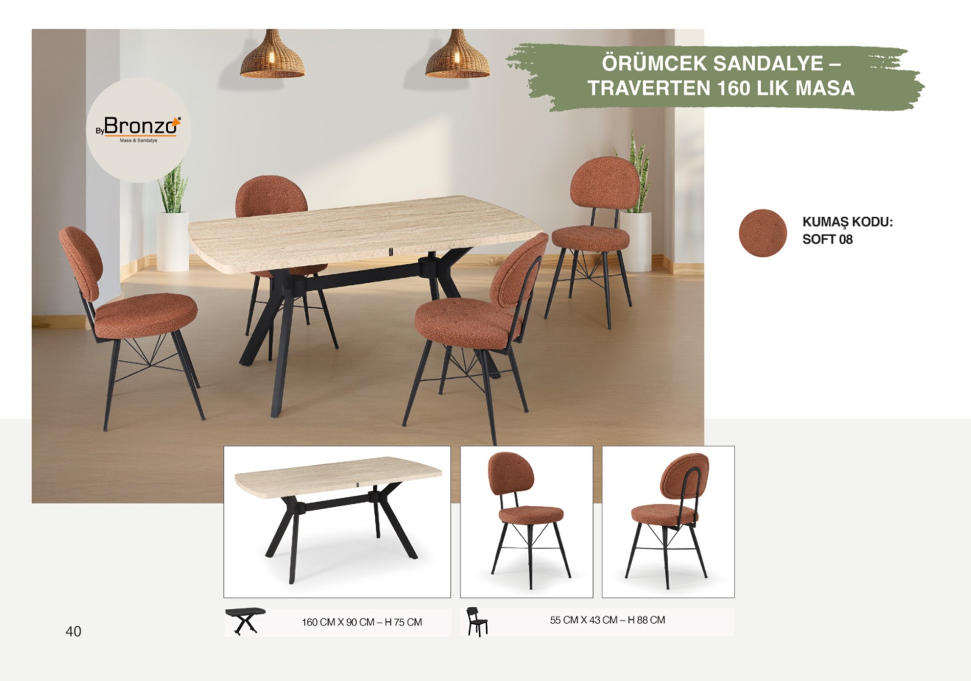 ÖRÜMCEK SANDALYE TRAVERTEN160 LIK MASA