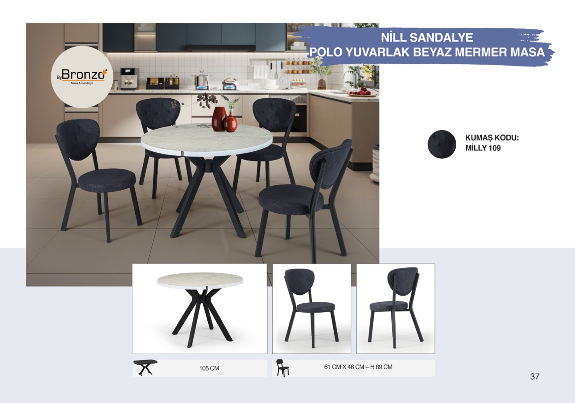 NİLL SANDALYE P. YUVARLAK BEYAZ MERMER MASA